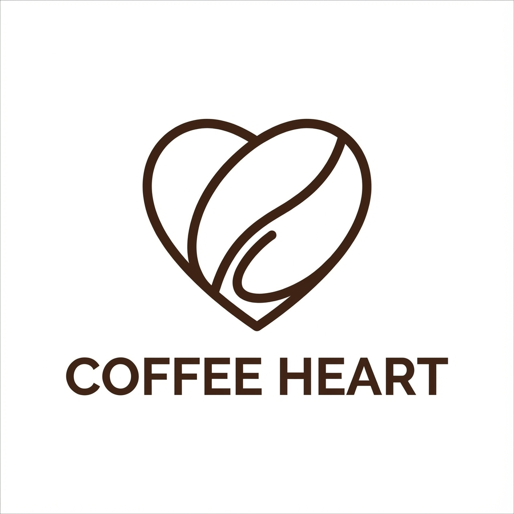 Минималистичный логотип для кофейни, изображение кофейного зерна в виде сердца, векторный стиль, белый фон. 1:1